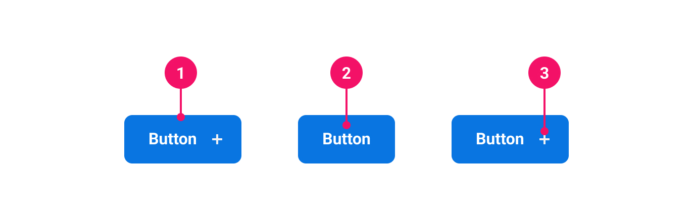 Icon (optional): Supplementary visual indicator that can be positioned alone or added to the left or right of the label. Used to promote the purpose of the button.