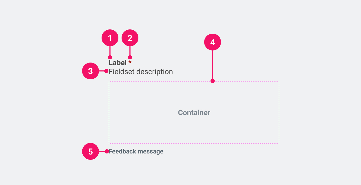 - Container: Container for the items in the Fieldset, eg. Radio Buttons or Checkboxes.