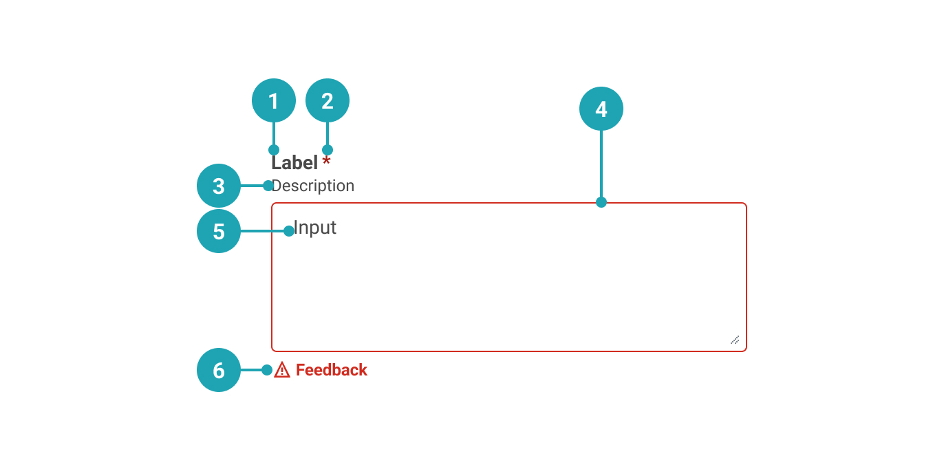 | description | string | Renders a description below the label to give further information on how to fill out the TextArea. | No | |