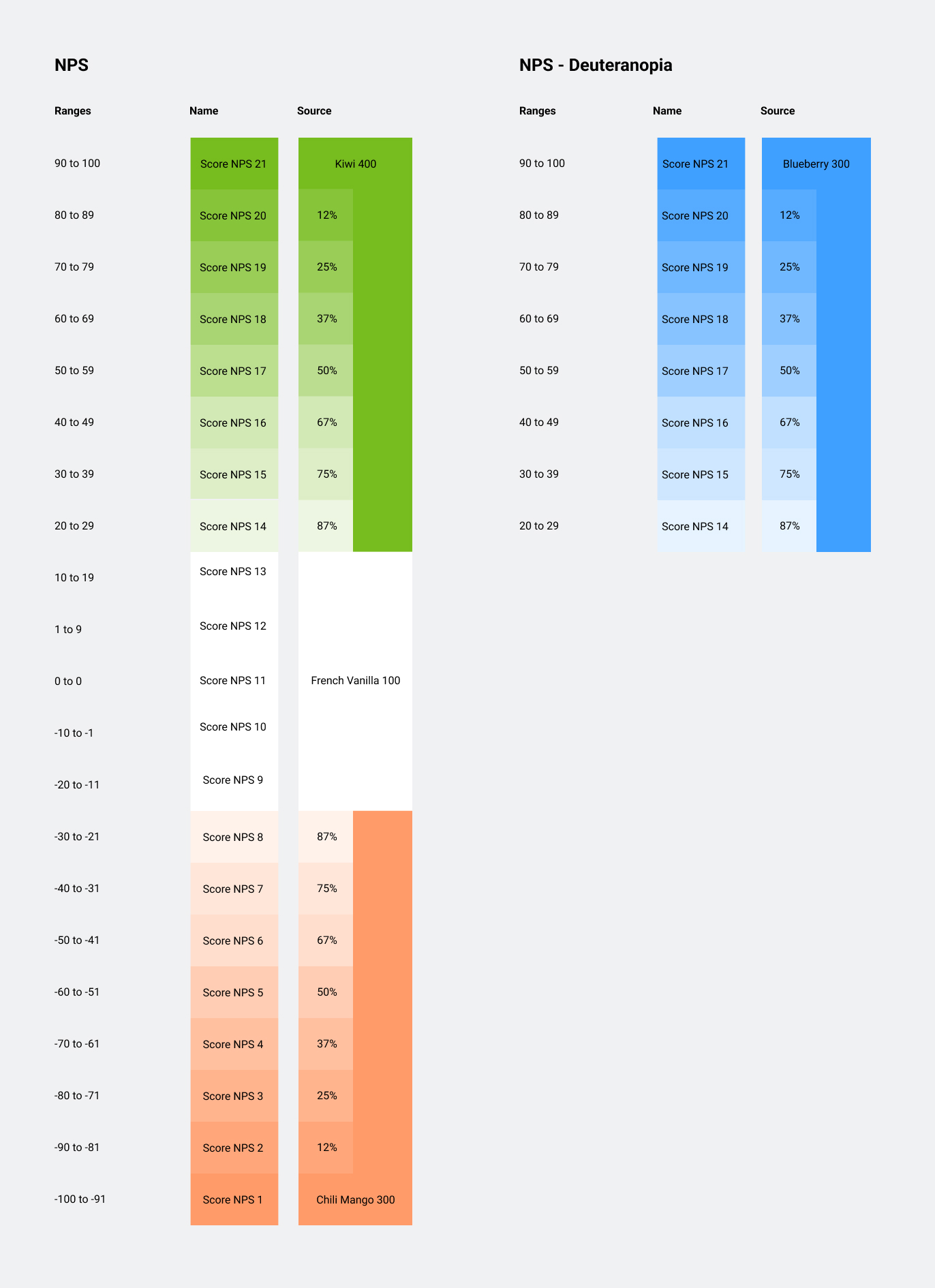 Currently used on the Heatmap when the score-toggle is set to NPS 21 steps, 9th-13th (5 middle steps) is neutral/white.