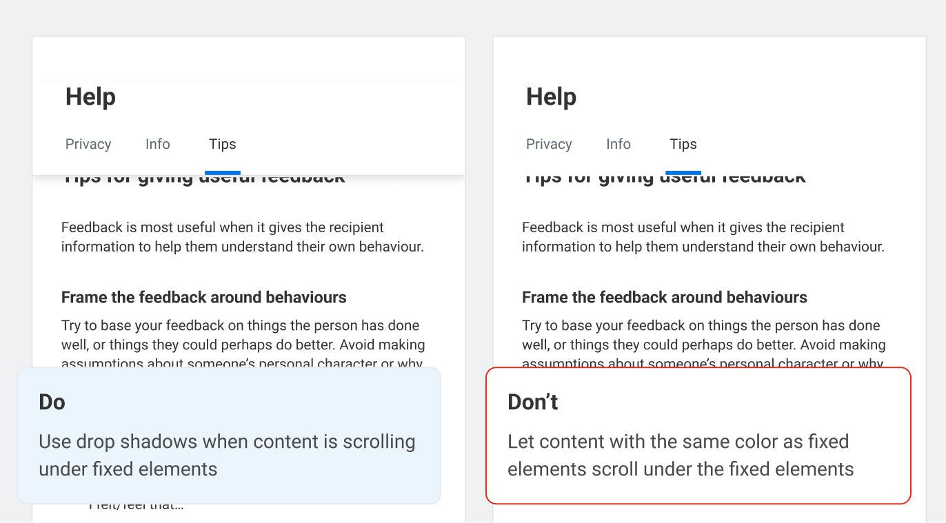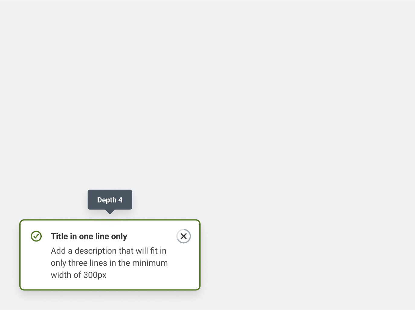 Make sure tooltips, overlays, and modals are visually distinct from other content through supporting icons, color usage, appropriate depth usage, and other visual elements Make sure borders of tooltips, overlays, and modals meet 3:1 contrast with their backgrounds